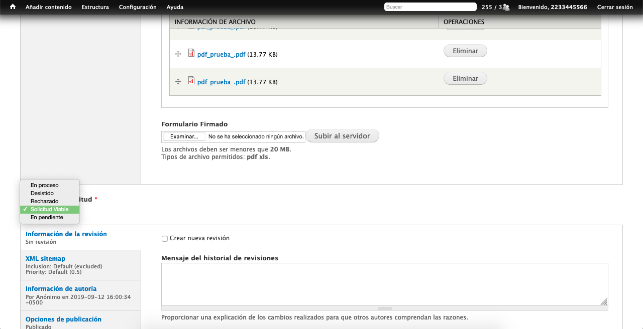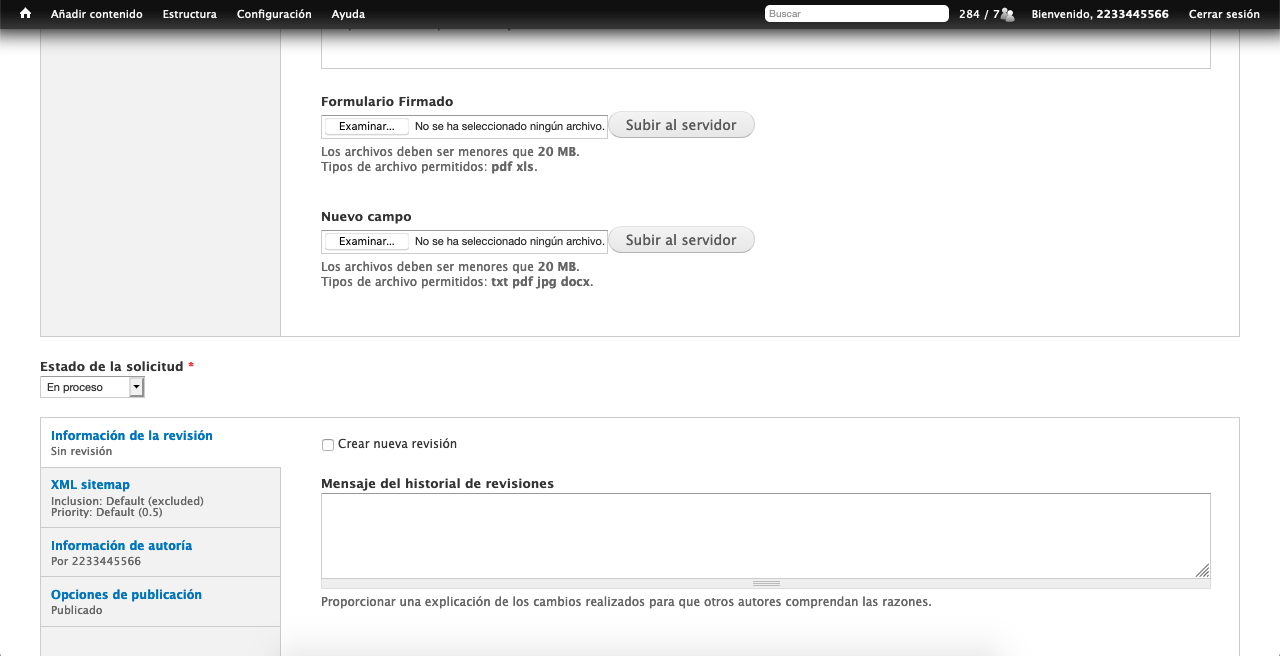 Al estar en tu perfil, verás un menú administrativo, donde están los enlaces para generar las solicitudes.