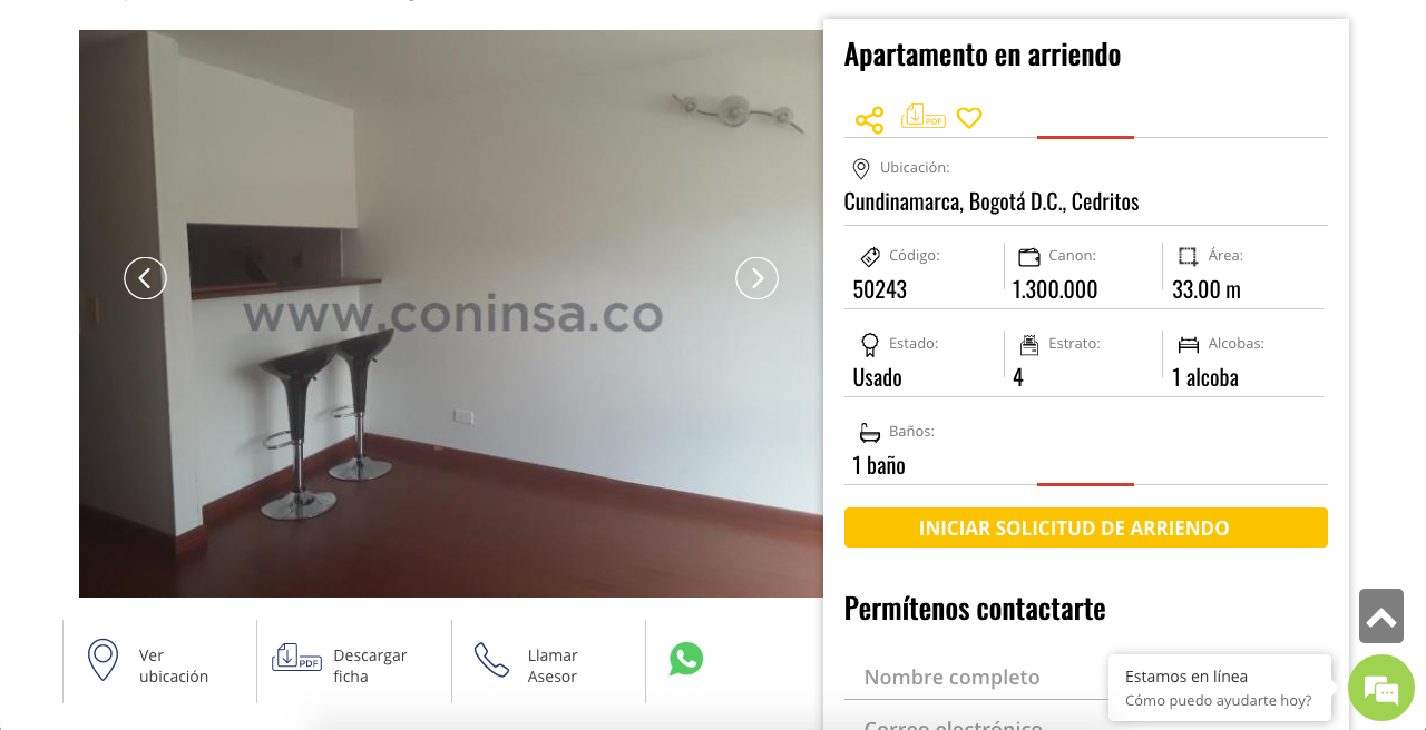 Al encontrar tu inmueble deseado podrás ir al detalle e iniciar tu solicitud de Arrendamiento vía web.