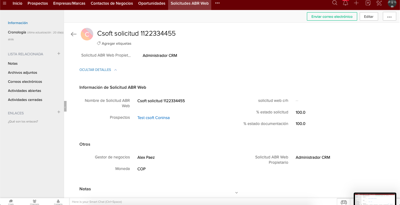 También se guarda y comparte el estado en que va el proceso, para que el asesor asignado en CRM pueda realizar el respectivo seguimiento.